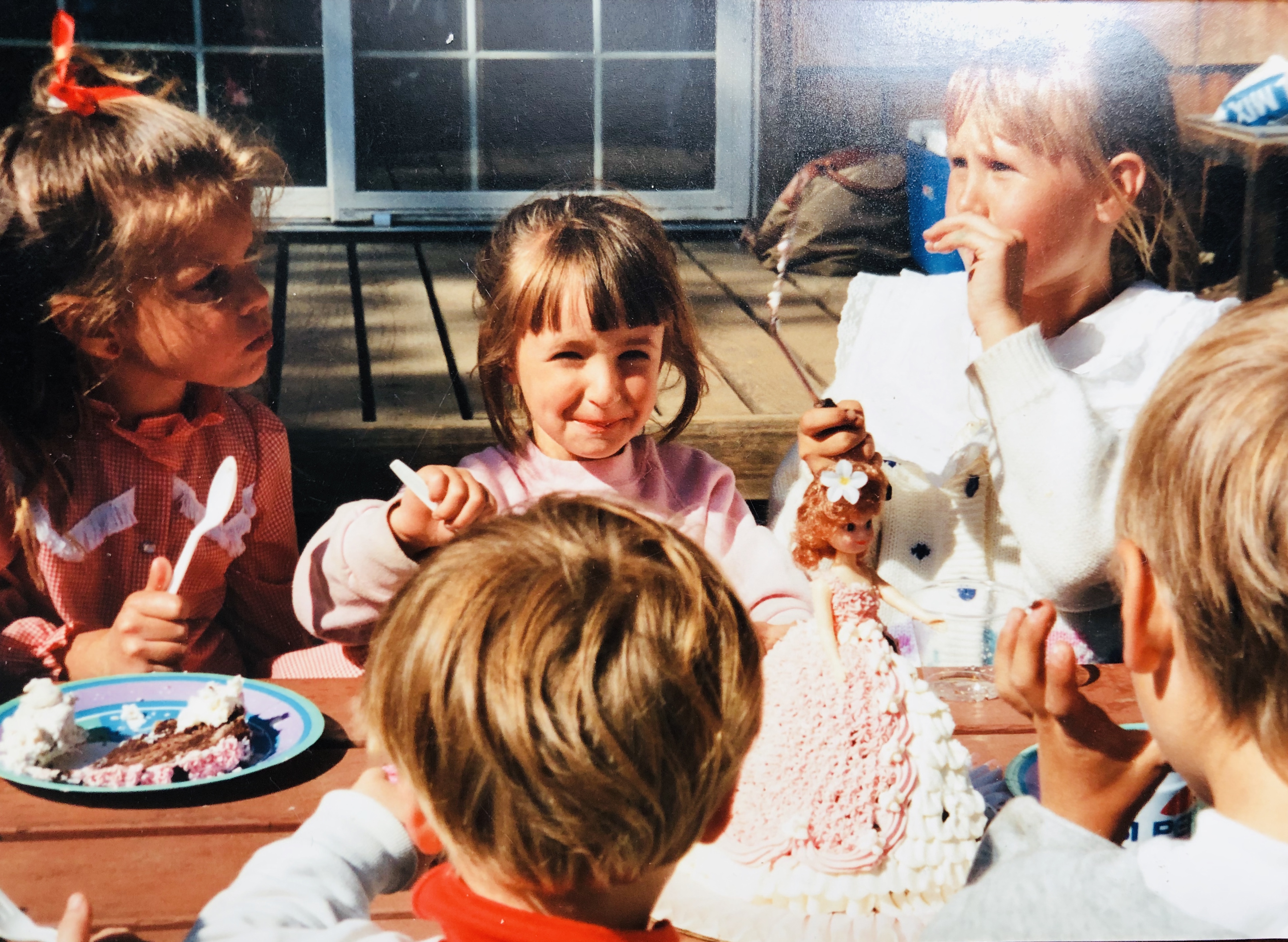 This is my birthday, circa late-1980s (notice those bangs, cut at home by mom with a piece of Scotch tape across the forehead):